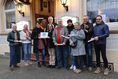Dezember 2023: 6000 Euro konnte eine Gruppe von Asselner Bürgern am Mittwoch dem Malteser Kinder- und Jugend Hospizdienstes übergeben. Aus einer lockeren Idee am Tresen wurde eine Spendensammelaktion, die sich sehen lassen kann. Seit Jahren schon sammeln die Kunden des Asselner Bürgerkrugs in einem BVB-Tippspiel Geld für die Malteser. In den letzten 14 Jahren sind so über 14.500 Euro zusammen gekommen. Die Aktion am 16.12. toppt aber alles. Bereits im Vorfeld wurden Sponsoren und Kunden angesprochen und 3.500 Euro gesammelt. Beim Adventszauber, bei dem es Bratwurst und Steak im Brötchen und natürlich Glühwein gab, wurden noch einmal 2500 Euro eingenommen. Frau Budde und Frau Büschler vom Hospizdienst waren sprachlos. So große Spenden sind äußerst selten. „Das ist ein außergewöhliches Weihnachtsgeschenk, mit dem wir den Kindern und Familien, die wir betreuen, viel Gutes tun können“, betonte Karin Budde. |